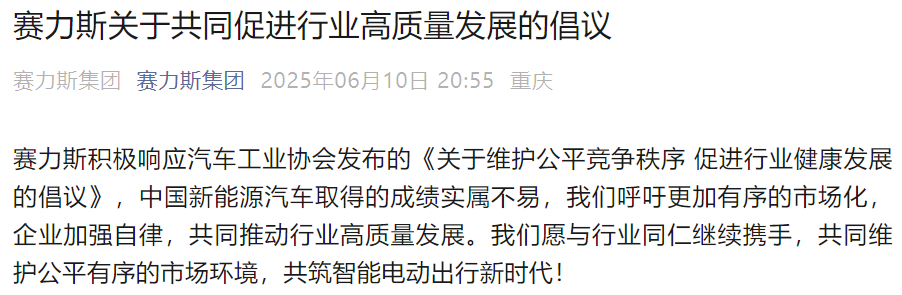 赛力斯表示,赛力斯正在积极推进产品集成化、智造集聚化,有效促进产业链上下游企业的协同发展,提升整个产业集群的竞争力。一直以来,赛力斯按照与供应商的合同约定付款,正常货款账期60天,实现主机厂与供应商双赢。